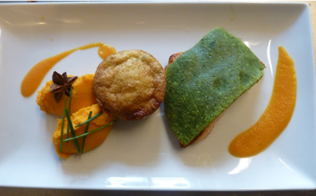 - Foie gras (FR) and gingerbread, hot-cold apricot preparation.